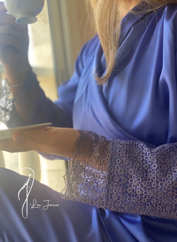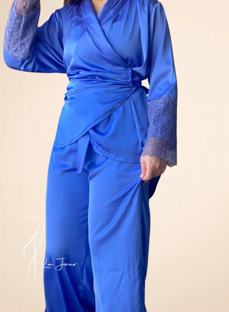 مواصفات بيجامة حرير ازرق درابيه :