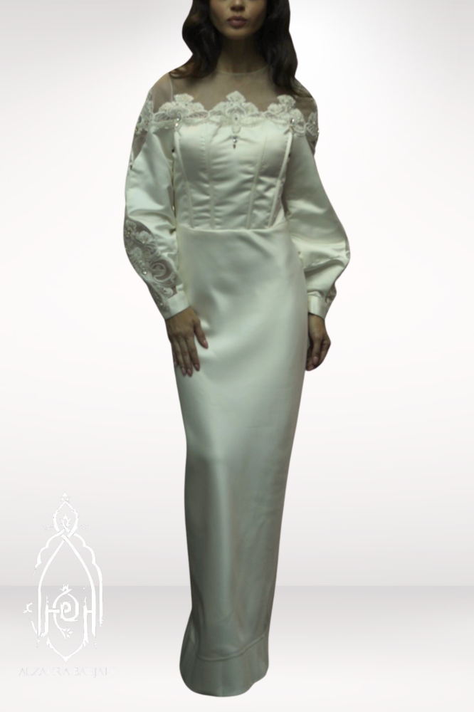فستان طويل ماسك كورساج مزين بالجبير البارز و المطرز بالكريستال