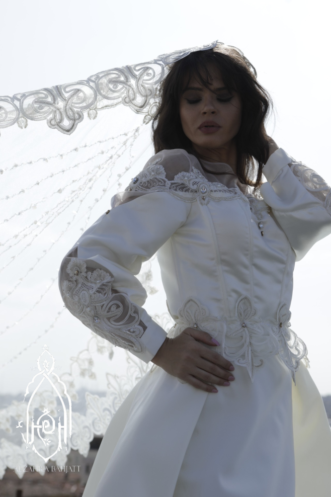 طرحة طويلة شك يدوي وجبير مزين بالكريستال