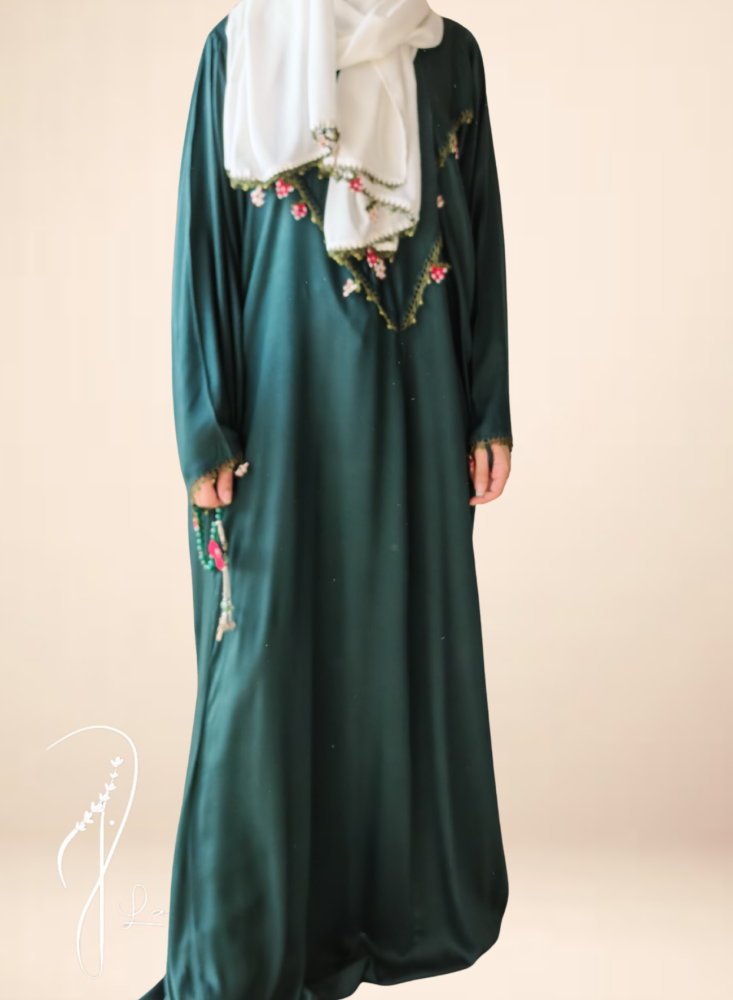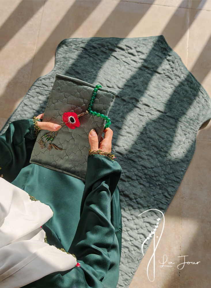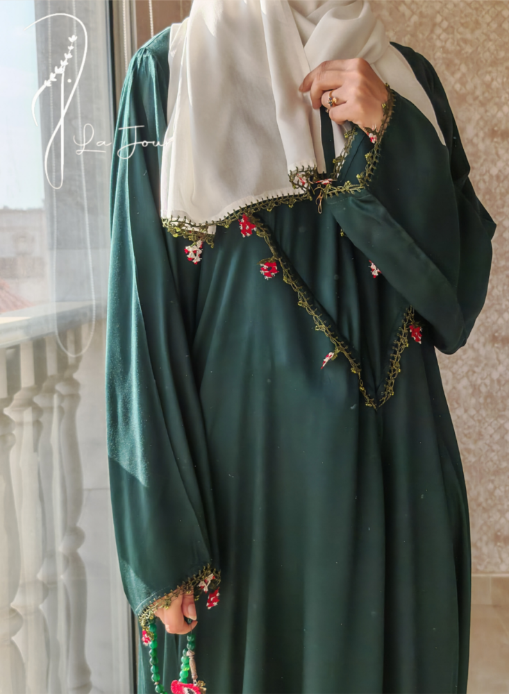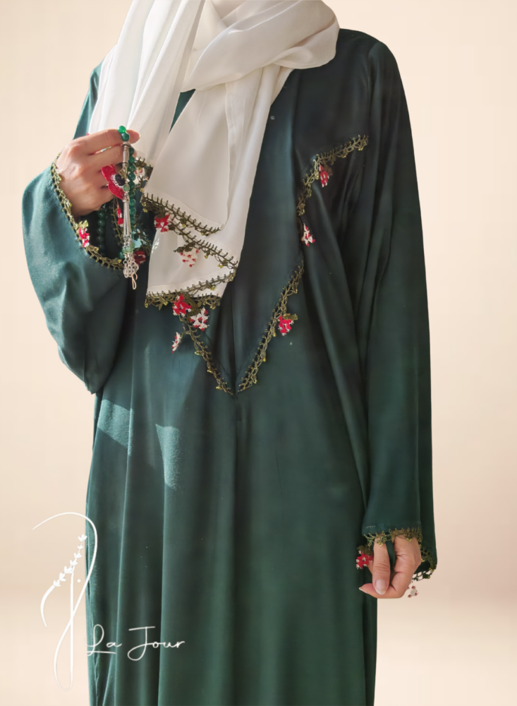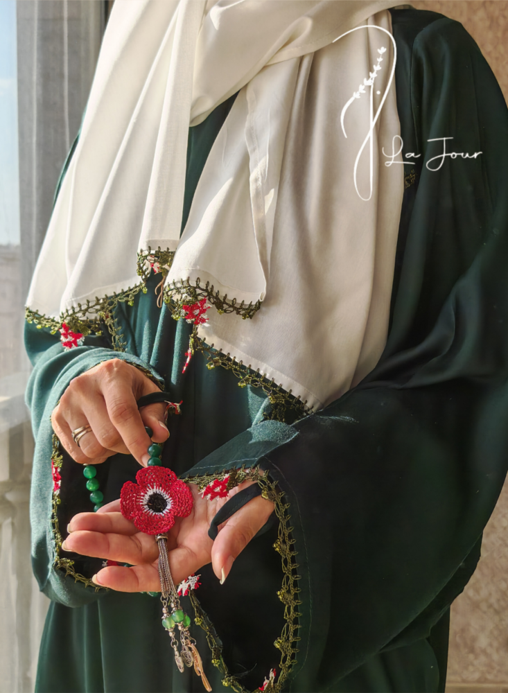 شرشف صلاة سستة اخضر مزين بالكروشيه و الورد الاويا ( كروشيه تركي ينفذ بالابرة👌🏻) يدوي