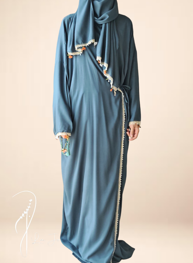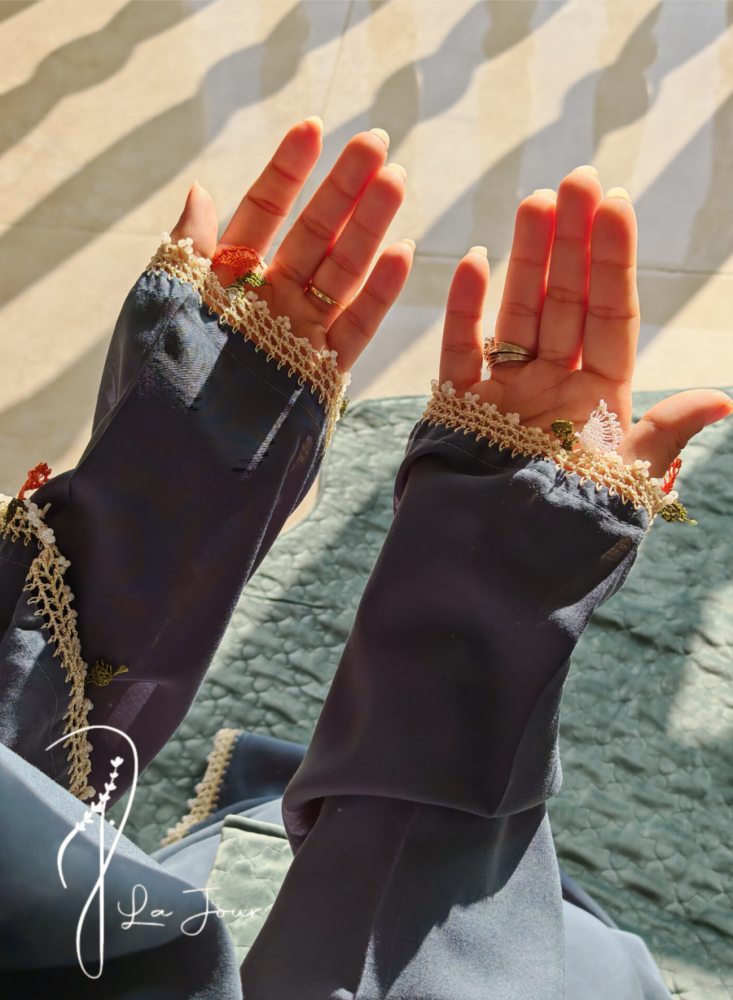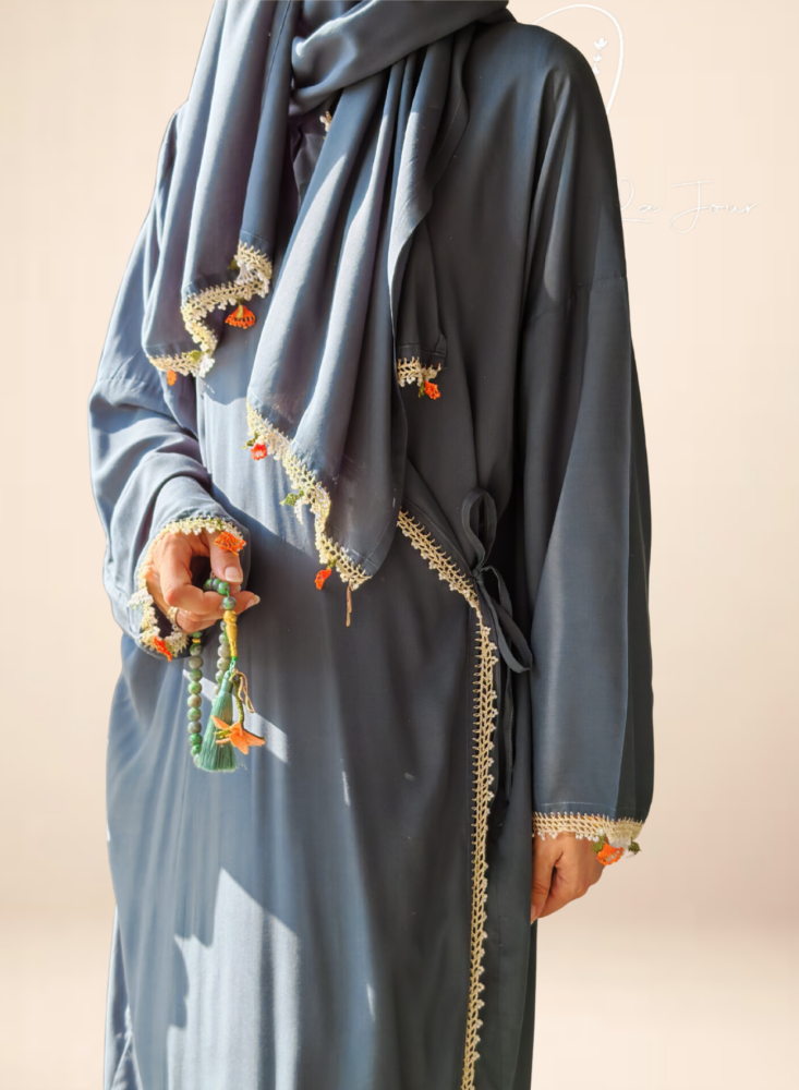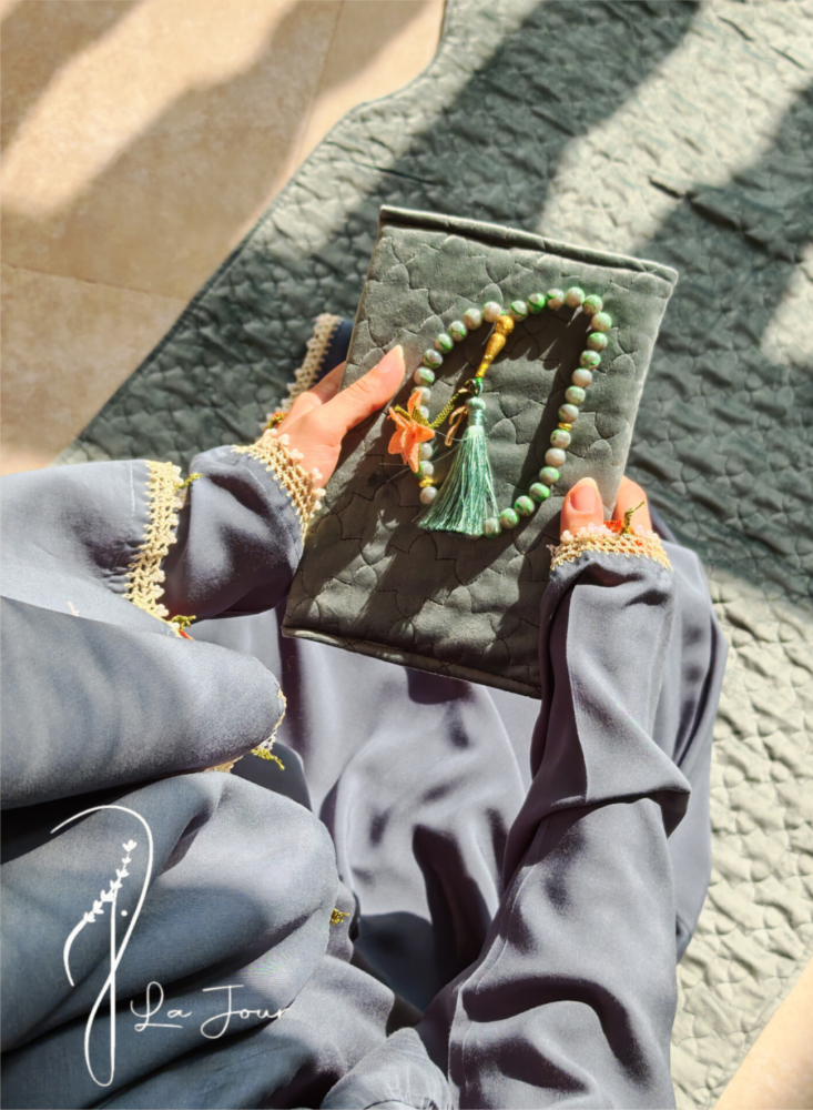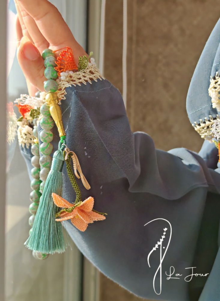 شرشف صلاة لف زيتي على رمادي مزين بالورد الاويا ( كروشيه تركي ينفذ بالابرة👌🏻) يدوي
