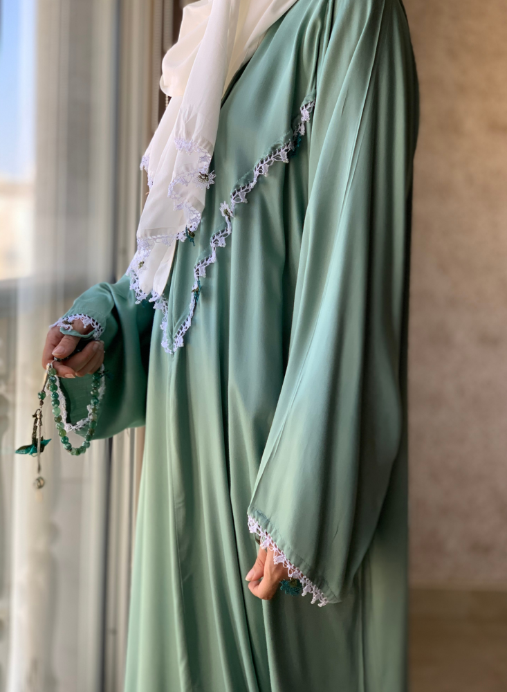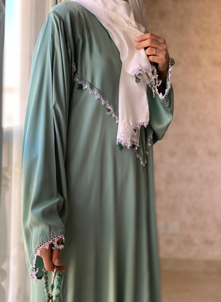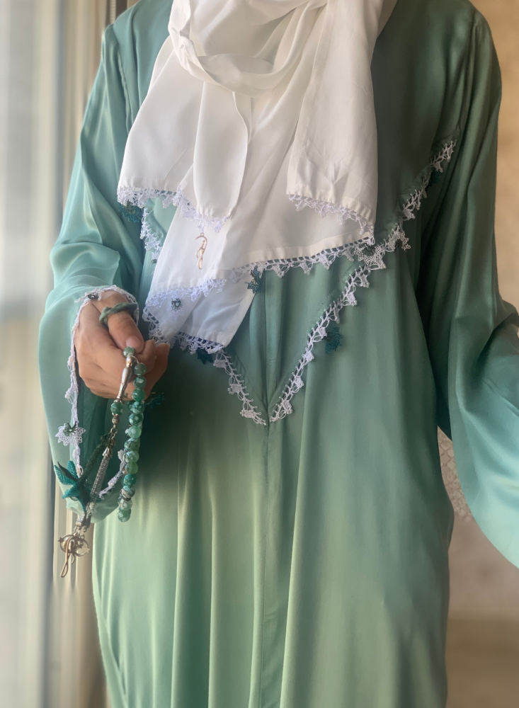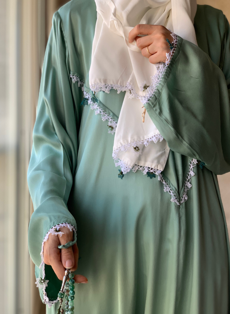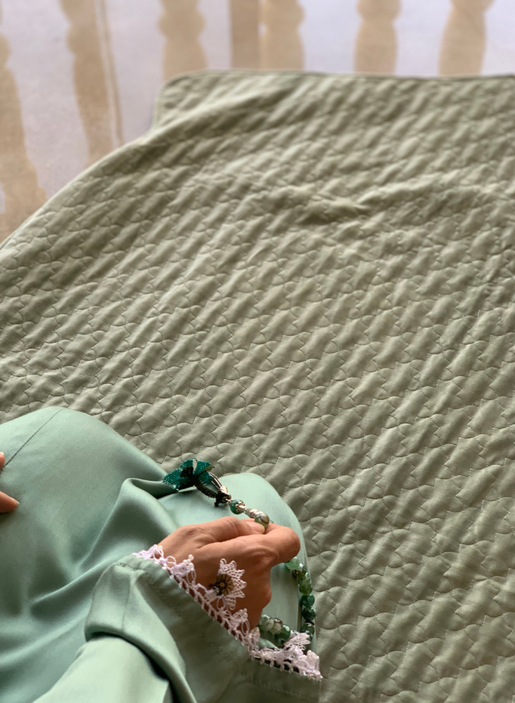 شرشف صلاة سستة اخضر مزين بالكروشيه و الورد الاويا ( كروشيه تركي ينفذ بالابرة👌🏻) يدوي