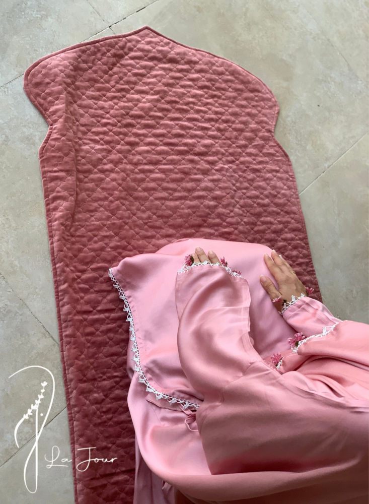 تمتعي بالأناقة والراحة في كل صلاة مع شرشف صلاة وردي ستان اويا ورد و الطرحة متصلة. يجمع هذا الشرشف بين نعومة قماش الستان الفاخر والتطريز الأنيق بتصميم الورود، مما يضفي لمسة من الرقي والأنوثة. تصميم الطرحة المتصلة يوفر سهولة وراحة للاستخدام اليومي