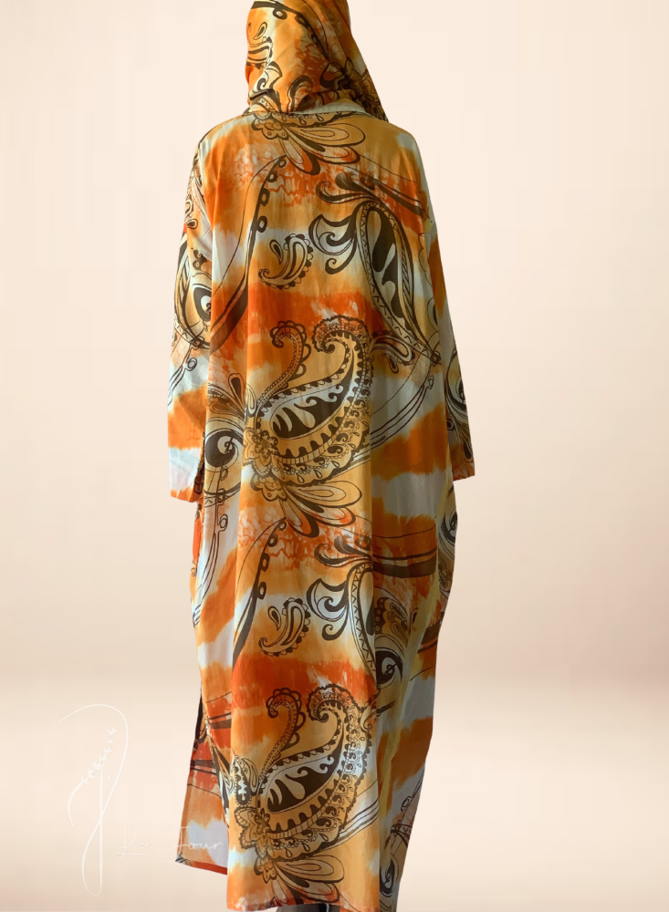 A prayer sheet, dress, or abaya, a practical open wrap.