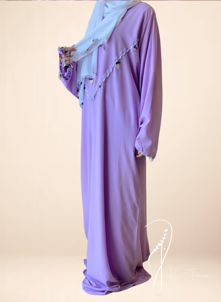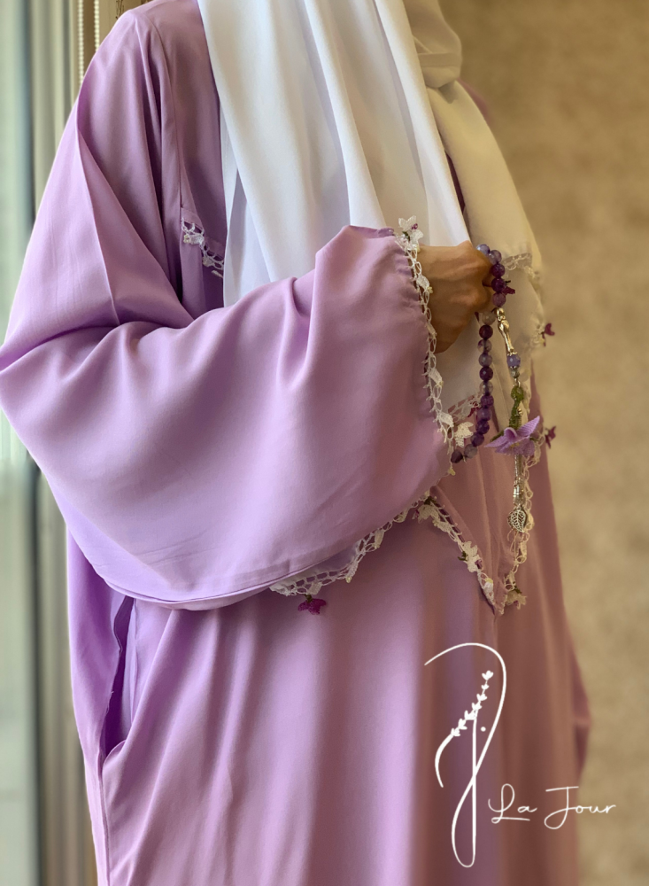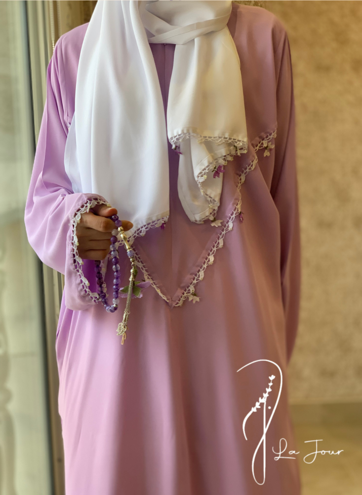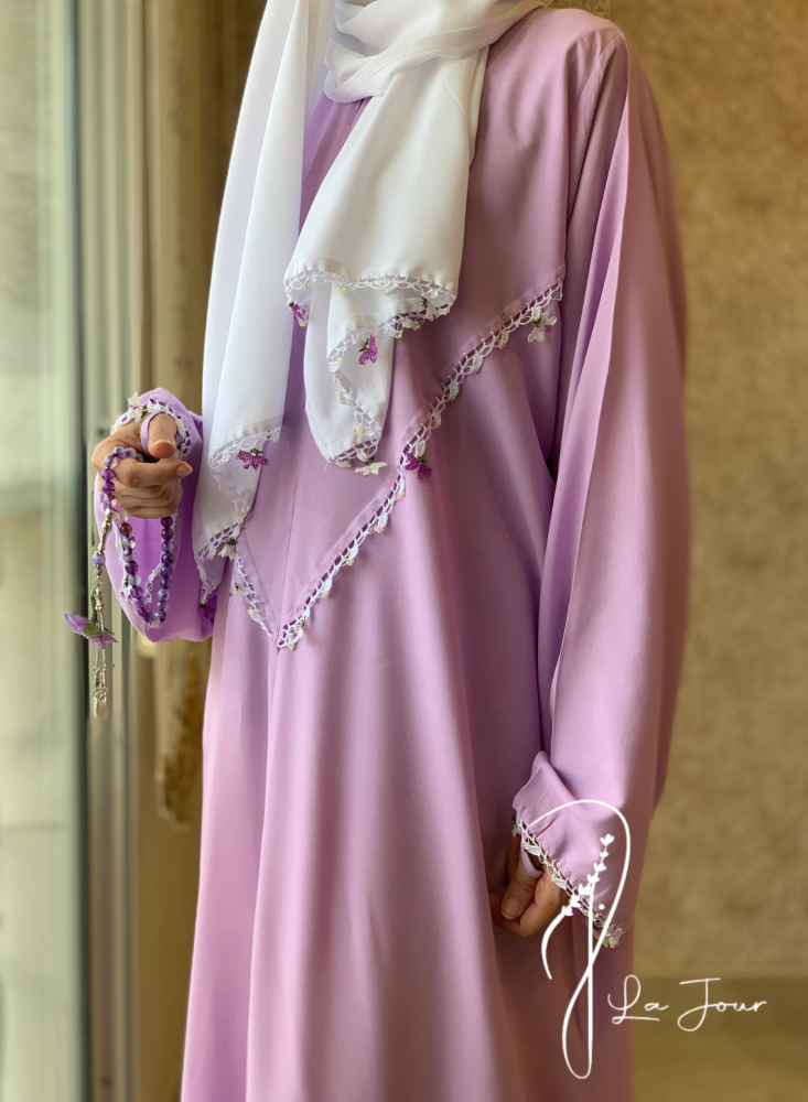 Handmade cotton prayer rug with zipper, decorated with crochet (Turkish crochet done with a needle)