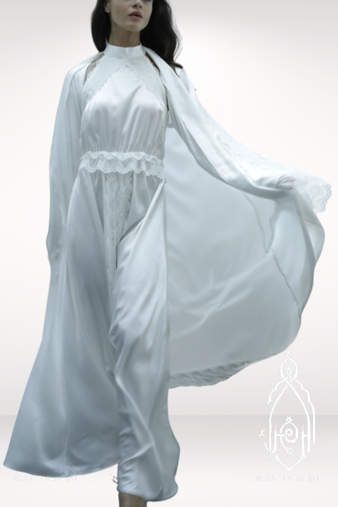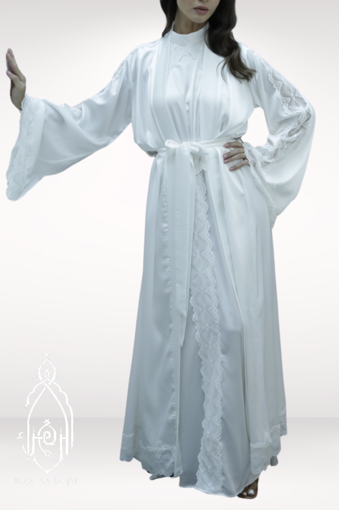 - وروب حرير كم طويل واسع مع دانتيل فاخر على الروب و الأكمام