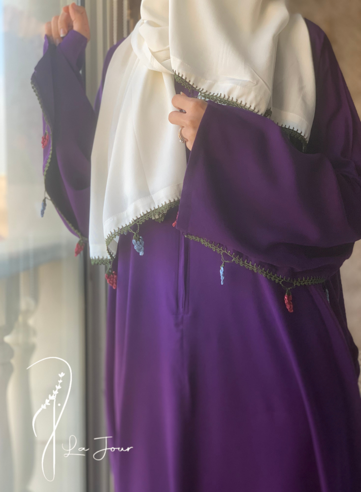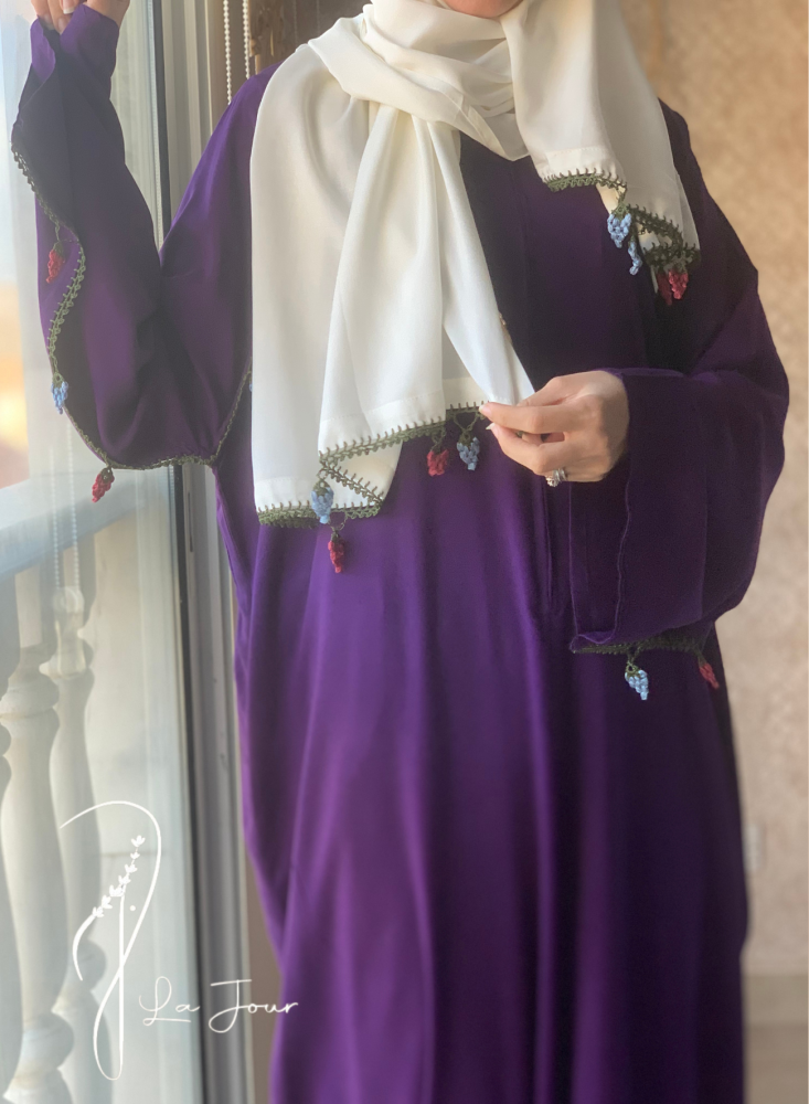 شرشف صلاة موف سحاب كروشيه عناقيد العنب هو اختيار رائع يجمع بين الأناقة والراحة، يتميز بلون الموف الجميل ويأتي مزيناً بتفاصيل كروشيه على شكل عناقيد العنب، مما يضيف لمسة فنية رائعة.